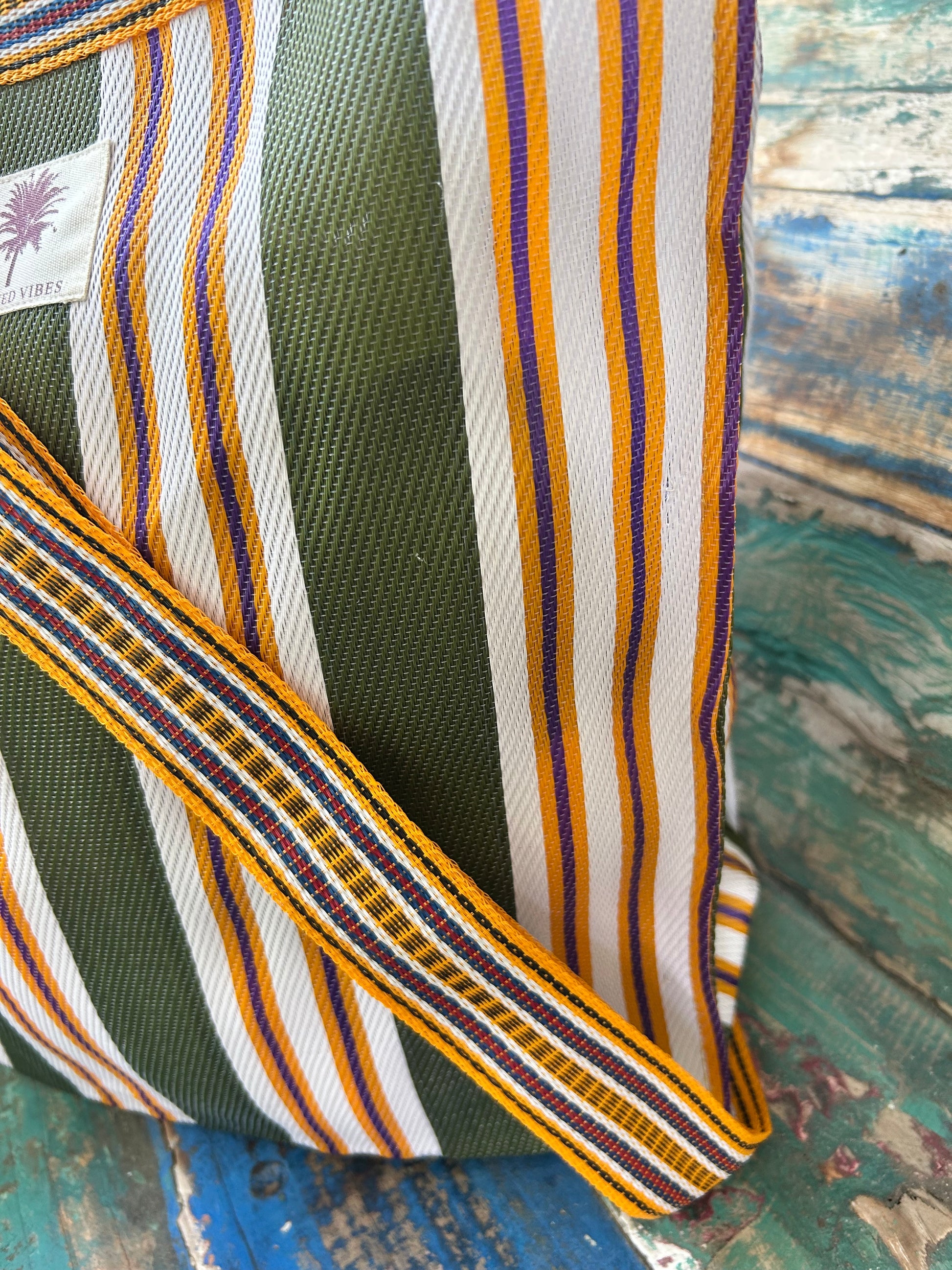 Crafted from 100% recycled materialsand 100% recyclable, these bags are designed with sustainability and style in mind. Perfect for that relaxed day at the beach or stroll through your favourite market.